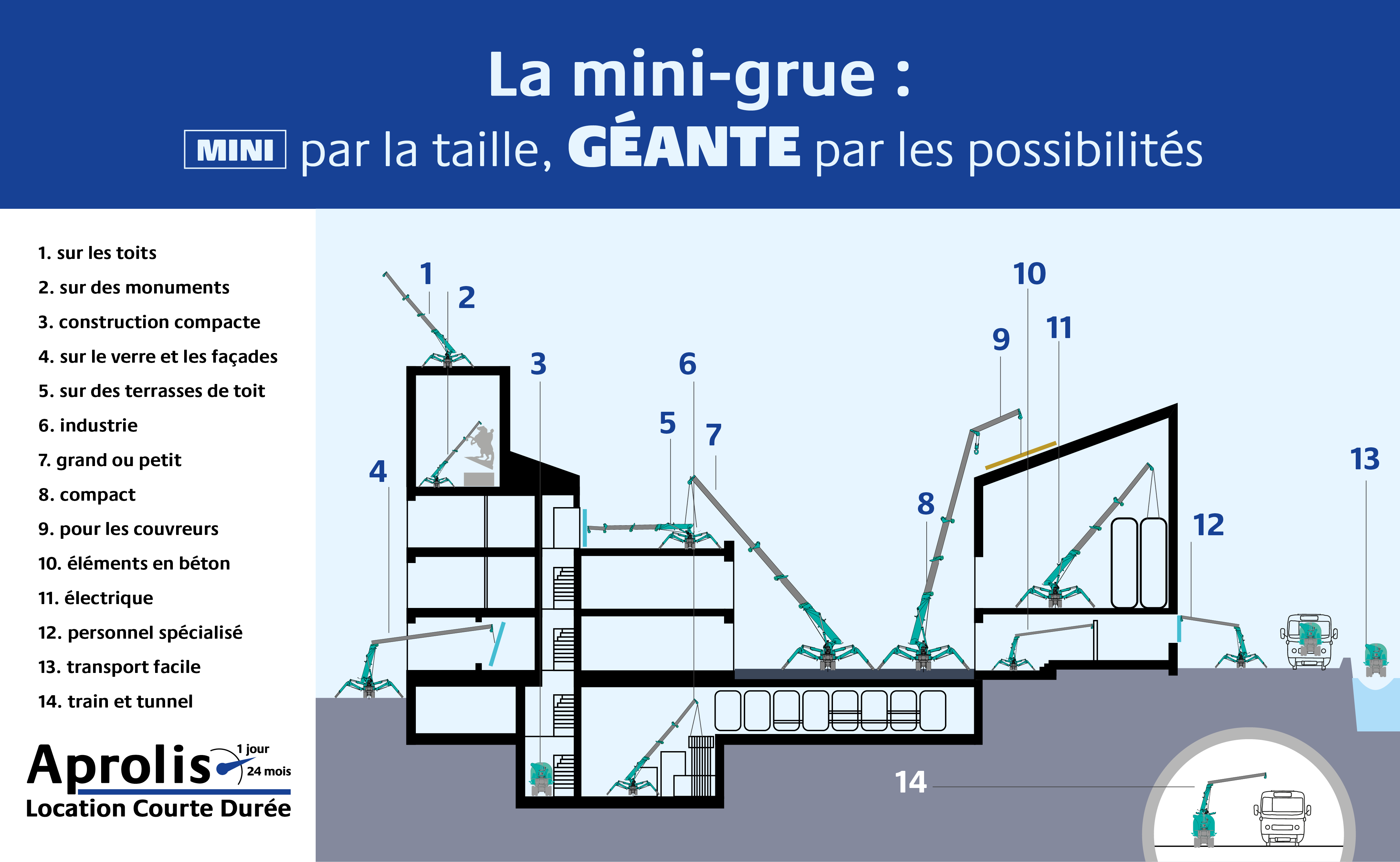 Aprolis Location mini-grue, la seule offre de location de mini-grue partout en France.